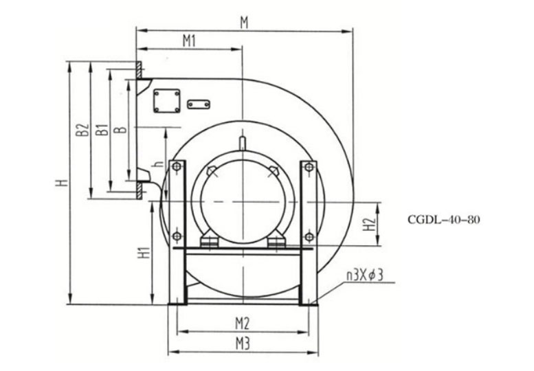 通風(fēng)機(jī)為臥式,電動(dòng)機(jī)直聯(lián)結(jié)構(gòu),需要時(shí)也可制成立式結(jié)構(gòu)。