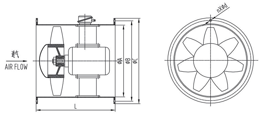 通風(fēng)機制成電動機置于機殼內(nèi)的結(jié)構(gòu),葉輪直接安裝在電動機軸上。